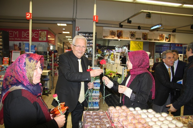 Kdz.Ereğli Soroptimist Kulübünün, 8 Mart Dünya Emekçi Kadınlar Günü dolayısıyla düzenlediği kermese katılan Halil Posbıyık, burada Ereğli Belediye Başkanı Hüseyin Uysal ile de karşılaşırken, kermese emeği geçen yöneticilere ve davetlilere karanfil dağıttı.