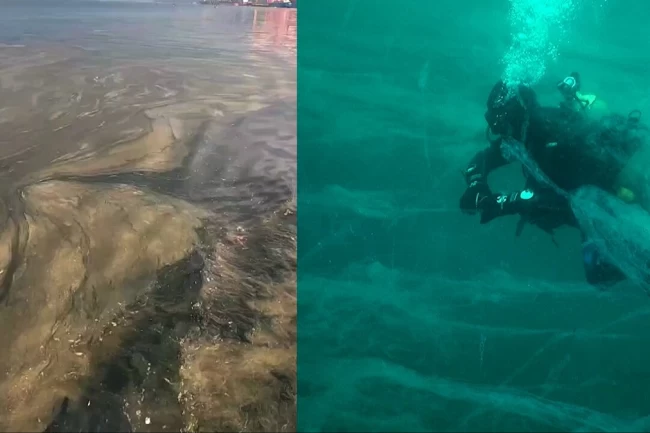 Biri Gemlik Su Ürünleri Kooperatifi Başkanı Hüseyin Dalarel'in Gemlik Körfezi'nden çektiği deniz yüzeyi görüntüsü ile Erdek Körfezi'nde deniz altındaki müsilajı paylaşan Prof. Dr. Mustafa Sarı, deniz dibindeki görüntüyü günden beri uyardığını belirterek, "Nihayet müsilaj yüzeye çıkmaya başladı. Şimdilik Gemlik Körfezi ile Marmara kıyılarındaki iskele, liman, marina ve balıkçı barınaklarında bir görünüp bir kayboluyor. Yakın zamanda diğer körfezler ile az akıntılı deniz alanlarının hepsinde yüzeyde müsilajı görmeye başlayacağız büyük olasılıkla" diyerek önlem konusundaki çağrısını yineledi.