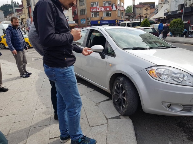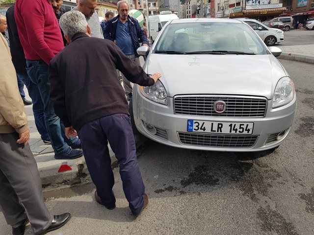 Kdz.Ereğli'de pazaryeri mevkiinde otomobil refüje çıktı. Otomobilin lastiği patlarken, sürücü yapılan kavşağa tepki gösterdi.