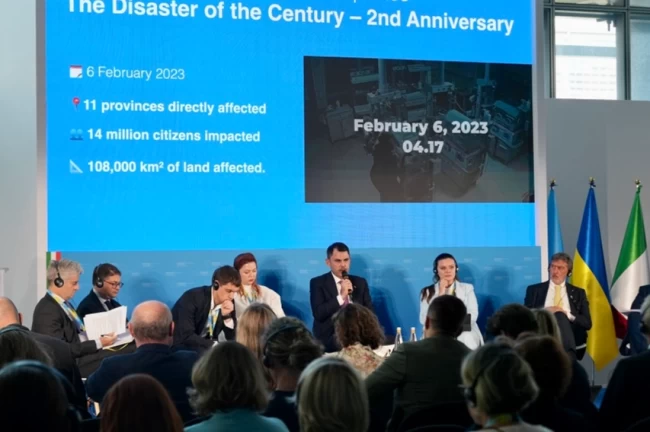 Çevre, Şehircilik ve İklim Değişikliği Bakanı Murat Kurum, Roma'daki Ukrayna İyileştirme Konferansı'nda Türkiye'nin deprem bölgesindeki inşa seferberliğini paylaşarak, Ukrayna'nın yeniden inşası için destek sözü verdi.