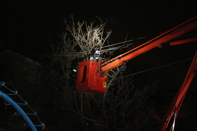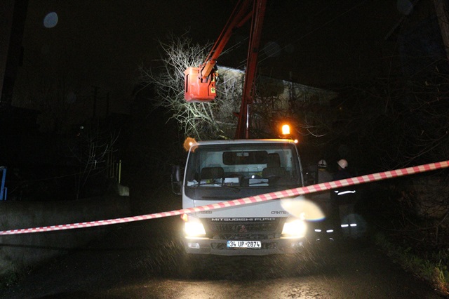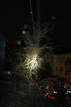 Ekipler, bir yandan devrilen ağacın kaldırma çalışmalarını sürdürürken, diğer yandan ise zarar gören enerji nakil hatlarında onarım çalışması başlattı.
