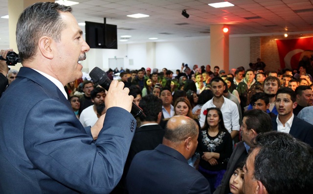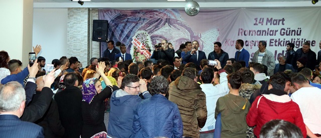 Alkışlarla salona giren ve göreve geldiğinden bu yana Romanlarla bir ve beraber olduklarını vurgulayan Başkan Uysal, 'Biz seçim zamanları değil, sizi her zaman sevdik' dedi.