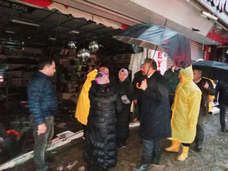 AK Parti Zonguldak Milletvekili Saffet Bozkurt, Kdz.Ereğli’de yaşanan afet nedeniyle dükkanlarını su basan çarşı içi esnafını ziyaret etti.