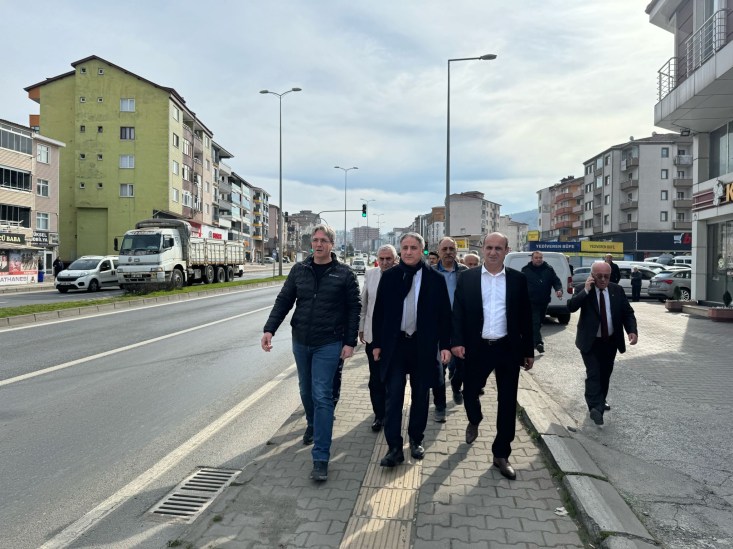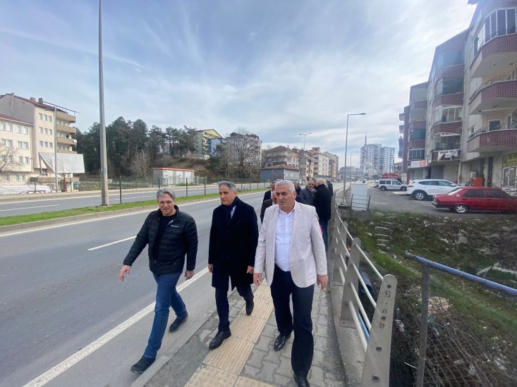 Kavşaklar başta olmak üzere alanda incelemelerde bulunan Bozkurt ve beraberindekiler yol güzergahında yapılabilecek çalışmalara ilişkin istişare etti.