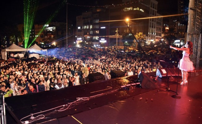 Yüzlerce vatandaş sağanak yağışa rağmen konser alanını terk etmedi