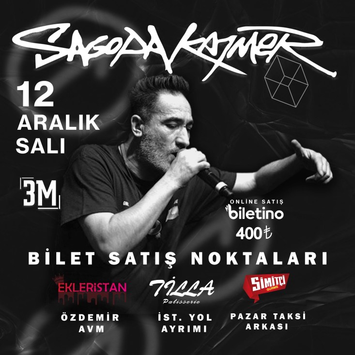 Rap dünyasının ikonlarından biri haline gelen Sagopa Kajmer 12 Aralık Salı günü saat 20.00'da Karadeniz Ereğli’de muhteşem performansı ile sevenleri ile buluşacak..