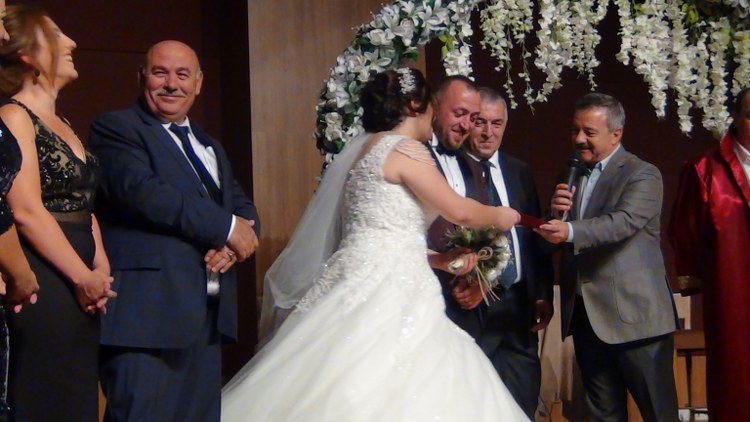 Büyük Anadolu Ereğli Otel’in Erdemir Salonu’ndaki etkinlikte çiftin nikahını Gülüç Belediye Başkanı Gökhan Demirtaş kıydı. Demirtaş’ın zaman zaman esprilileri, salonda gülüşmelere neden oldu.