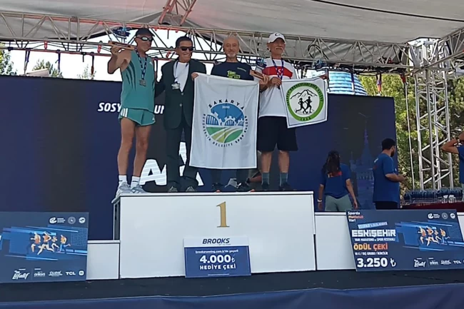 SAKARYA (İGFA) - Sakarya Büyükşehir Belediyesi sporcuları katıldıkları yarışmalarda başarılara imza atmaya devam ediyor. 2-3 Ağustos tarihlerinde Eskişehir'de gerçekleştirilen 6. Uluslararası Eti Lifalif Yarı Maratonu'na katılan Büyükşehirli sporcu Ali Turan, 65-69 yaş grubunda zorlu parkuru başarıyla tamamlayarak kürsünün zirvesine çıktı.