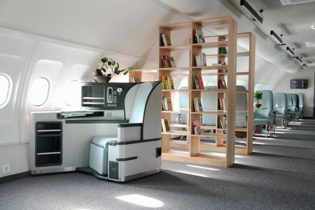 Koltuk ve masa bölümlerine önemli dokunuşların yapıldığı uçağın içinde bir de kütüphane oluşturuldu. 82 oturma kapasiteli uçağın içinde yemek, sıcak- soğuk içecekler, tatlı ikramı gibi hizmetlerle kütüphane hizmeti verileceği, ayrıca uçak içinde Sakarya’yı anlatan bir simülasyonun olacağı belirtildi.