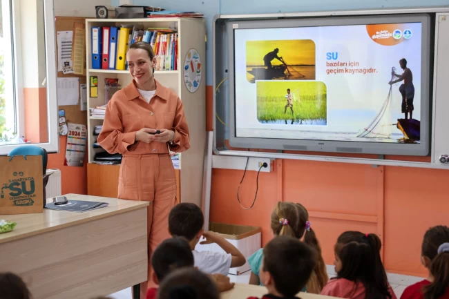 Hendek Akova İlkokulu'nda gerçekleştirilen eğitimde interaktif sunumlar ve animasyon destekli içerikler eşliğinde öğrencilere suyun doğal döngüsü, arıtma süreçleri ve evde uygulanabilecek tasarruf yöntemleri aktarıldı.