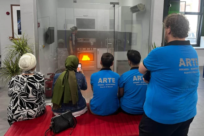 Eğitim programının devamında, Afet Eğitim Merkezi'ndeki sergi alanındaki, dokunmatik ekranlarla geçmiş afetlere dair gazete kupürleri incelendi. 112 acil arama simülasyonu ve test kiosklarıyla katılımcılar bilgilerini sınayarak doğru ihbar yöntemlerini deneyimledi.