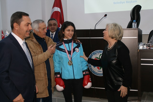 Karadeniz Ereğli Belediye Meclisi, 16 Yaş Türkiye Boks Şampiyonası’nda şampiyon olan Ereğlili genç sporcu Öznur Özsu ve antrenörü Celal Güven’in ödüllendirilmesini kararlaştırdı.