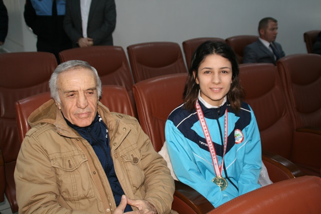 Uysal, genç sporcu Öznur Özsü ve Antrenör Celal Güven, birlikte basın mensuplarına hatıra fotoğrafı verdi.
