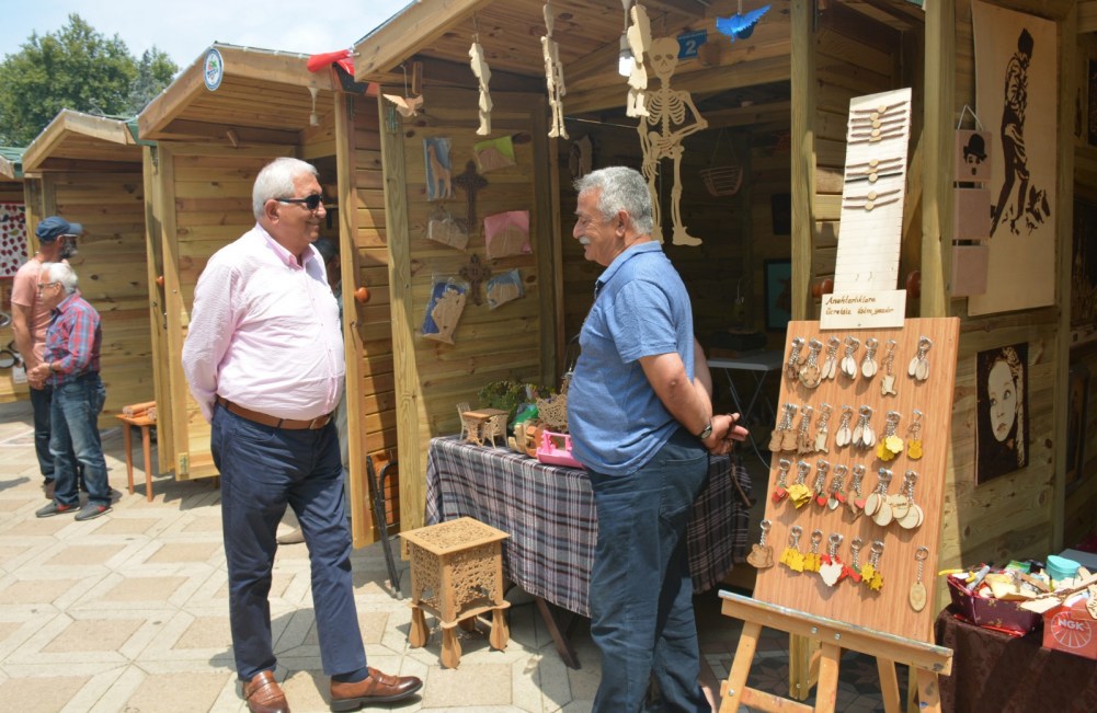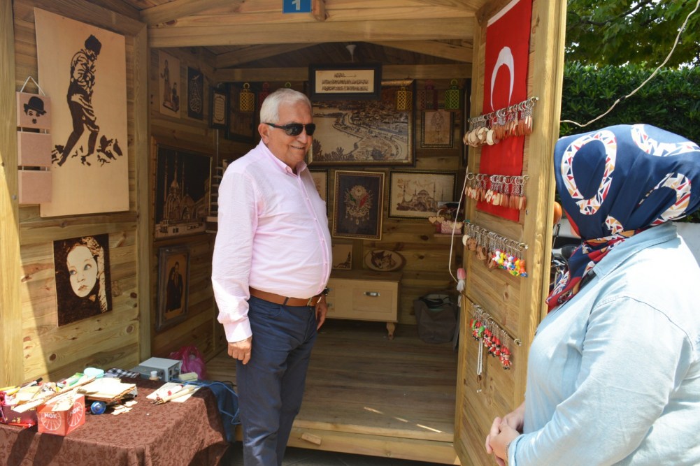 Polis Evi'yle Bozhane arasında kalan bölümde açılan stantları ziyaret eden Belediye