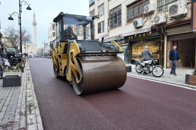 Şanlıurfa'nın en işlek güzergâhlarından biri olan Divanyolu Caddesi'nde yürütülen yenileme çalışmalarında ikinci etap renkli asfalt çalışmaları da tamamlandı.