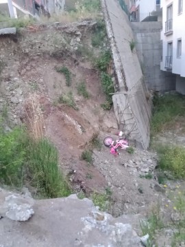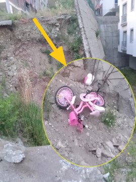 Kdz.Ereğli Elmatepe mahallesinde inşaatı devam eden istinat duvarının kenarında bisiklete binen Ela T., yaklaşık 5 metre'den aşağı düştü. Şans eseri, kazayı ufak sıyrıklarla atlatan Ela T.'nin bisikleti kullanılamaz hale geldi.