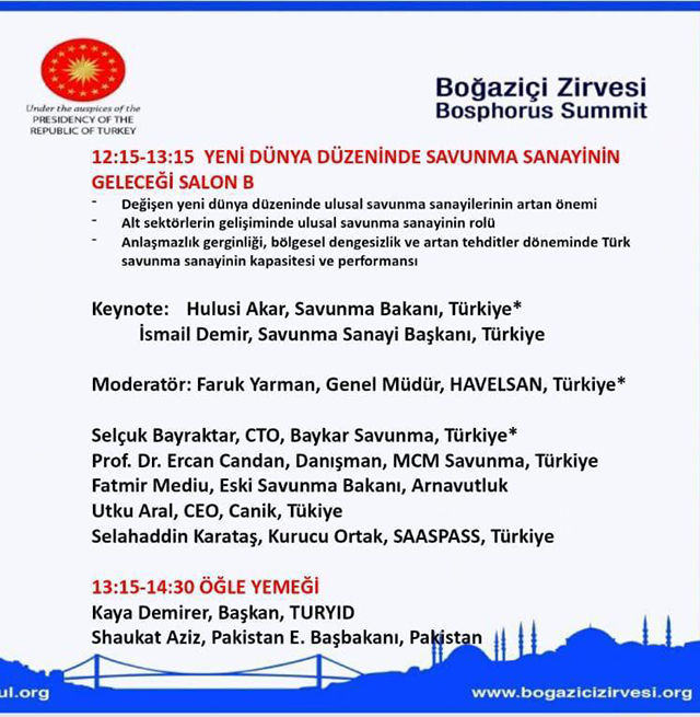 Savunma Bakanı Hulusi Akar ve Savunma Sanayi Başkanı İsmail Demir'inde katılacağı zirvede, AK PArti önceki dönem Zonguldak Milletvekili Prof. Dr. Ercan Candan, MCM Savunma Sanayi Danışman'ı olarak konuşma yapacak..