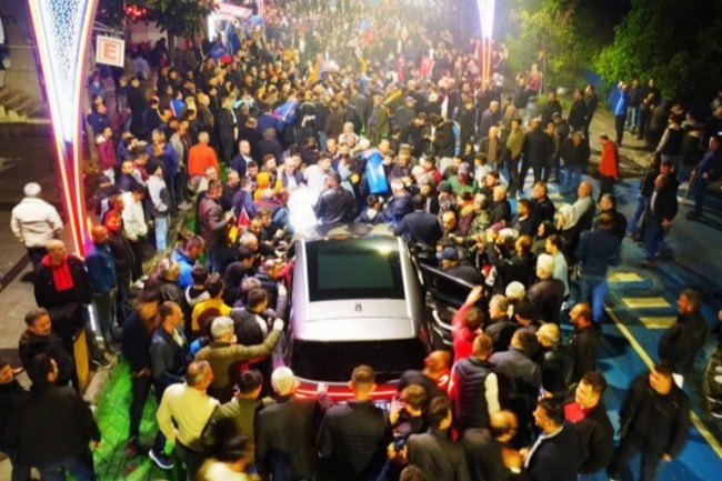 Alikahya'da seçim ofisinin açılışında meşale şov ve Togg geçişine bir de coşkulu kalabalık eklendi, açılış adetaKOCA mitinge dönüştü.