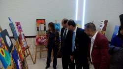 Burada öğrenci ve öğretmenlerle bir süre sohbet eden Demirtaş, açılan sergiyi dikkatle gezdi..