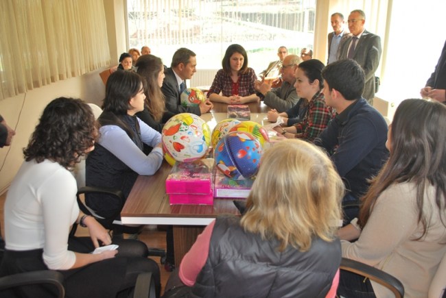 Burada okul yöneticileri ve öğretmenleri tarafından karşılanan Ak Partililer, Okul Kurucusu Şenol Bahadırdan okul hakkında bilgi aldılar.