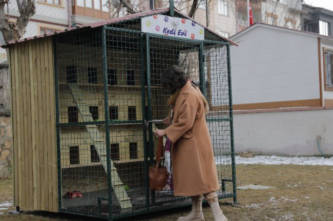 SİVAS (İGFA)- Sivas Belediyesi, soğuk hava şartlarından etkilenen kedilerin barınma, mama ve bakımlarının karşılanacağı ‘Kedi Evleri’nin ilkini şehirdeki Ethembey Parkı’na yerleştirdi.