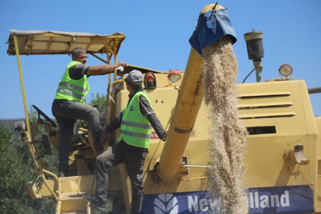 BURSA (İGFA) - Bursa'da çiftçilerin gelir düzeyini artırma ve üretim verimliliğini daha yukarıya çekme hedefiyle tarımsal destek çalışmalarını sürdüren Bursa Büyükşehir Belediyesi, kırsalda üretimi teşvik etmeye devam ediyor. Kırsal Hizmetler Daire Başkanlığı ve BESAŞ işbirliğiyle dağ ilçelerine dağıtılan Siyez buğdayında ilk hasat, Büyükşehir Belediyesi'nin biçerdöver desteğiyle Tarım Peyzaj AŞ ekipleri tarafından yapıldı. Keles ilçesi Yazıbaşı Mahallesi'nde yapılan hasat, üreticilerin de yüzünü güldürdü.