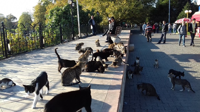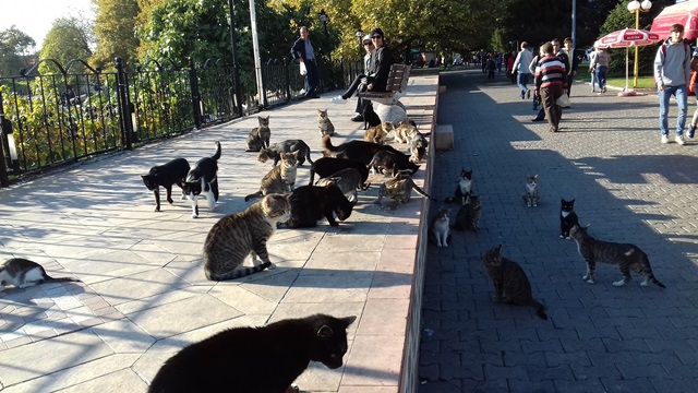 sahilde en az on kere kendisini kedilerin başında gördüm hadi gelin kızlar dediğinde kediler kuyrukları havada mutlu mutlu peşinden koşarlar gerçekten de çok ilginç isimleri var kediler yemek yerken bende merak ettim aaa bir baktım hep eski dönemin sahne sanatçıları önce garipsedim çok enterasan diye ne çok değerleri unutmuşuz adam kedilere ne lakaplar isimler takmış biraz tuhaf ama bence bu isimleri tekrar hatırlamak da çok güzel kimler yok ki arap bacı dursune şirin var,danyal topatan var,mualla sürer var,romalı perihan ne diyeyim bir yığın isim bence iyi bir hayvan sever tebrik ederim