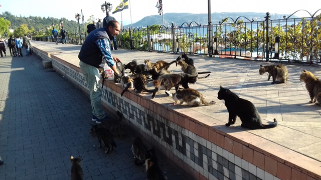 BENİM DE ŞAHSEN TANIDIĞIM SEVDİĞİM ÇOK İYİ UZMAN ÇAVUŞ EMEKLİSİ BİR ARKADAŞIMDIR BOZHANE SAHİLİNDEN HER GEÇEN KİŞİ SANIRIM ONU GÖRMÜŞTÜR KEDİLERİN TÜMÜNÜ KENDİ EMEKLİ MAAŞINDAN ALDIĞI PARALARLA BESLER KIŞIN İSE BOZHANEDE BALIKÇI ENGİN REİS TEKNESİNDEN ALDIĞI BALIKLARLA O SEVGİLİ KEDİCİKLERİN KARNINI DOYURUR VE HABERDE ANLATILDIĞI GİBİ ŞİMDİ Kİ KUŞAKLARIN TANIMADIĞI SANATÇILARIN İSİMLERİNİ KEDİLERİNE TAKMIŞTIR