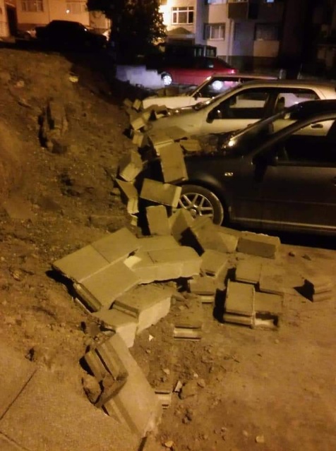 Sağanak yağışlar nedeniyle Alaplı Yeni siteler mahallesi'nde kısa süre önce yapılan istinat duvarı çöktü.
