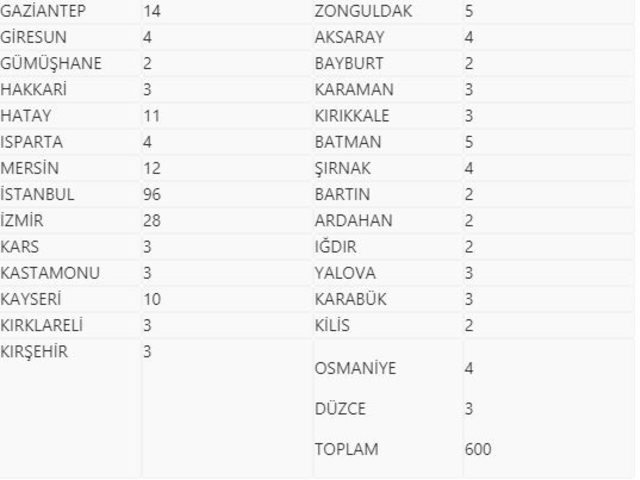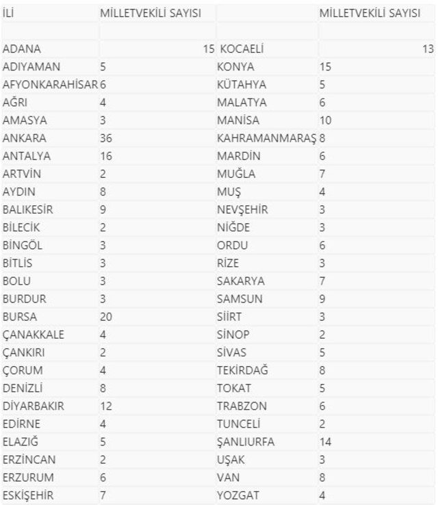Buna göre, milletvekillerinin illere göre dağılımı şöyle: