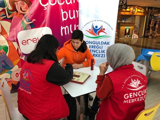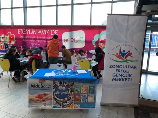 "Zonguldak Ereğli Gençlik merkezi tarafından düzenlenen sosyal medyadan sosyal medyana projesi Ereylin Alışveriş Merkezi Food Court katında 19 ocak Pazar günü 12:00‘dan 14:30‘a kadar hizmet verilmiştir. Sosyal medyadan sosyal medyana projesi altında taş boyama, santraç, tabu, boyama vb. çalışmalar yapılıp her yaştan insanın katıldığı projede sosyal medya bağımlılığına dikkat çekerek gençleri meydanlara çekmeyi amaçlayan uygulamalarla hizmet verilmiştir."