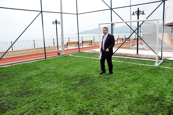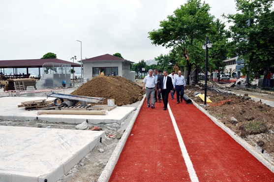 Kdz.Ereğli Belediye Başkanı Hüseyin Uysal, Ofis yanı Uzunkum Caddesi üzerinde ki sahil kenarına yapılan spor parkı kompleksinde çalışmaları yerinde inceledi.