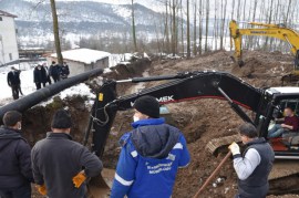 Kdz. Ereğli’nin içme suyunu karşılayan Kızılcapınar Barajı’ndan Arıtma Tesisi’ne gelen isale hattında dün gece patlama arızası yaşandı. Belediye tüm ekipleriyle arızayı gidermeye çalışıyor. Çalışmaları bizzat yerinde takip eden Başkan Posbıyık, “Yoğun kar yağışı sonrası toprak kayması ve zemin oturması nedeniyle su hattı borusu kırılmış. Su kesintisi yaşamadan sorunu gidermeye çalışıyoruz. Çalışmalara destek olan ERDEMİR’e ayrıca teşekkür ediyorum” dedi.