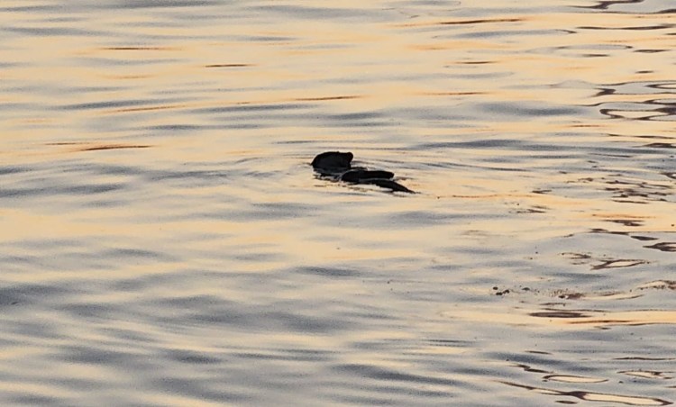 Deniz yüzeyinde yüzen bir su samuru, görenleri hem şaşırttı hem de sevindirdi.