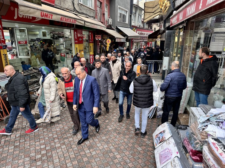 Kdz.Ereğli çarşı merkezinden AK Parti Kdz.Ereğli İlçe Başkanlığına yürüyen yaklaşık 30 kişilik tacir ekibi, ziyaret ettikleri M.Mucahit Andiç'e ‘Tacirler olarak adayımız Sinan Durdu’, dediler.