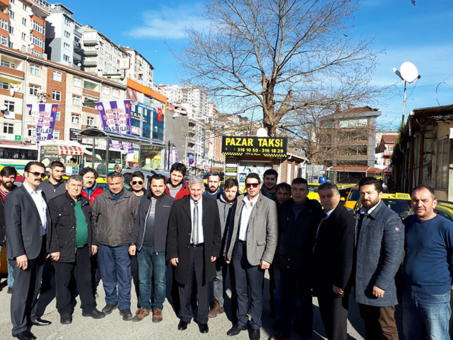 Şoförler Odası Başkan Adayı Murat Akyüz, bugün, ekip arkadaşlarıyla birlikte; Pazar ve Sahil Taksi duraklarını ziyaret etti. Her iki taksi durağında da Akyüz ve ekibini çok sayıda taksici esnafı karşıladı. Yaklaşık birer saat süren ziyaretlerde, taksiciler, sorunlarını Akyüz ve ekibi ile paylaştılar.