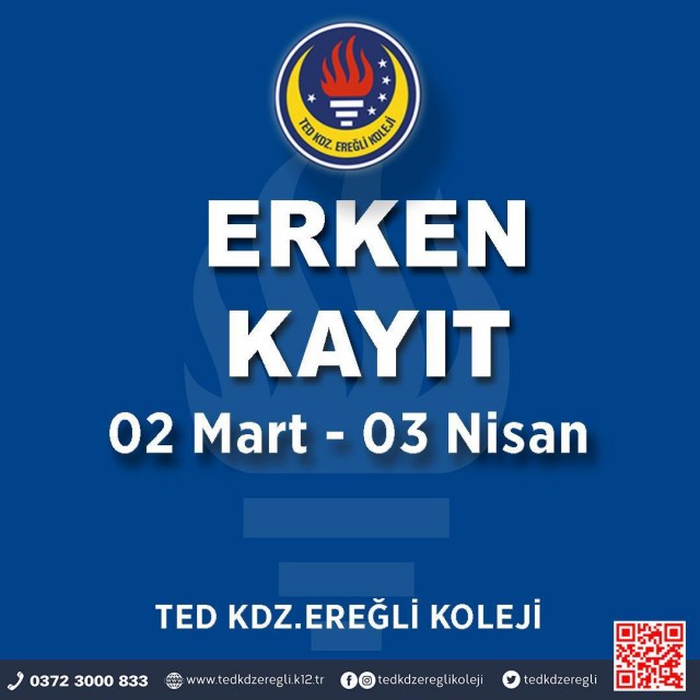 TED Kdz. Ereğli Koleji’nde erken kayıtlar, 2 Mart-3 Nisan 2020 tarihleri arasında yapılabilecek.