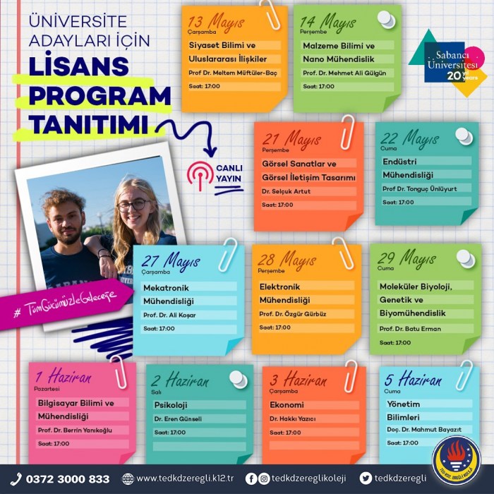 TED Kdz. Ereğli Koleji Vakfı Özel Lisesi, Bilgi Üniversitesi, Sabancı Üniversitesi ve TED Üniversitesi ile yaptığı işbirlikleri ile YKS’ye hazırlanan üniversite adayı öğrencilerini üniversitelerin öğretim üyeleriyle online ortamda biraraya getiriyor.