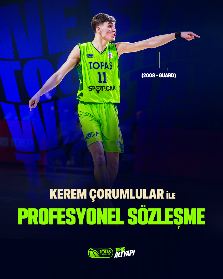 Kerem Çorumlular ise 1.99 cm boyunda ve guard pozisyonlarında oynuyor. Basketbola Bursa'da başlayan Çorumlular, 2021 yılında TOFAŞ altyapısına dahil oldu. U16 Türkiye Şampiyonası'nda "en iyi beş"e seçilen genç yetenek, milli takım formasıyla da sahaya çıktı. Son sezonda BGL'de gösterdiği istatistiklerle takımına önemli katkılar sağladı.