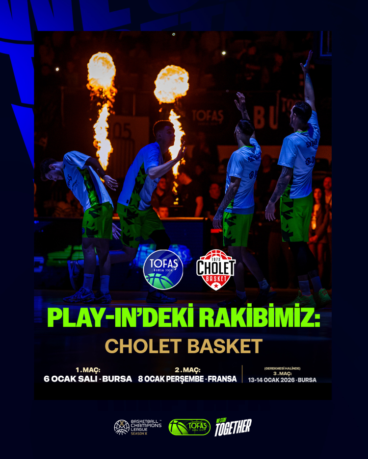 TOFAŞ Basketbol Takımı, Basketbol Şampiyonlar Ligi play-in eleme turunda Fransız temsilcisi Cholet Basket ile eşleşti. Kazananın son 16 takım arasına kalacağı seri Bursa'da başlayacak ve karşılaşmalar 6 Ocak ve 8 Ocak ile gerekmesi halinde 13-14 Ocak 2026 tarihlerinde oynanacak.