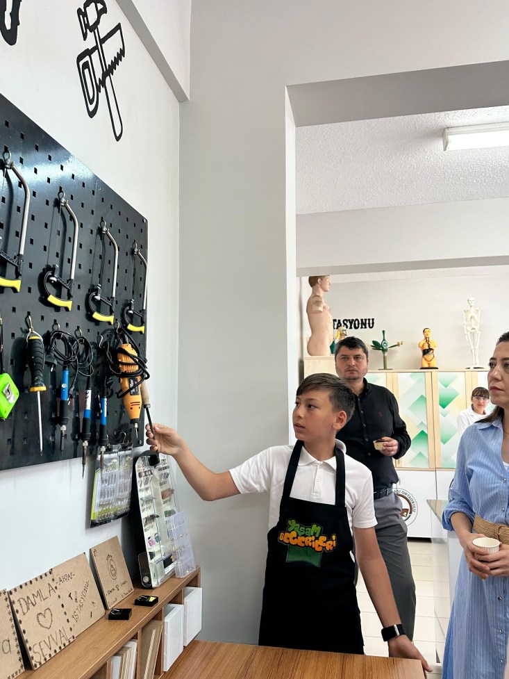 Açılış törenine İlçe Millî Eğitim Şube Müdürleri Adem Gül ve Ümmü Gülsüm Dedeşah da katılarak sınıfın işleyişi hakkında bilgi aldı.