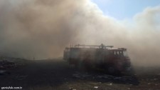 Kemer çöplük alaninda yangın cikti.. İtfaiye ekipleri olay yerinde..