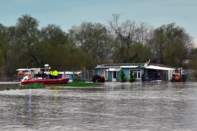 Bursa'nın Karacabey ilçesinde meydana gelen su taşkınına müdahale eden Bursa Büyükşehir Belediyesi ekipleri, bağ evinde mahsur kalan "Cesur" ve ..