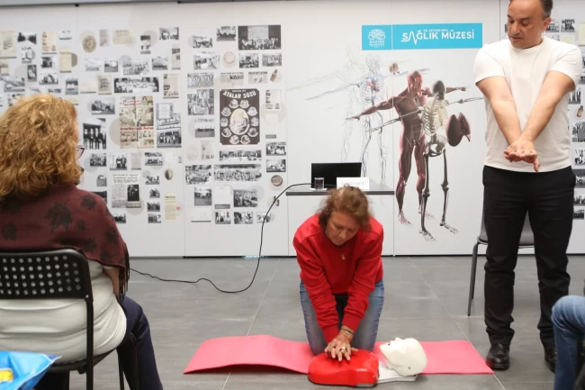 Bursa Nilüfer Belediyesi Dr. Ceyhun İrgil Sağlık Müzesi'nde gerçekleşen etkinlikte, İş Güvenliği ve İlk Yardım Uzmanı Hasan Hür, doğru ..
