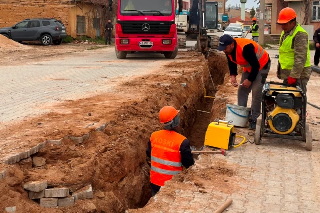 Konya Büyükşehir Belediyesi KOSKİ Genel Müdürlüğü, Ilgın'ın Şıhcarullah Mahallesi'nde yürüttüğü altyapı yenileme çalışmalarıyla içme suyu hatlarını yeniliyor.