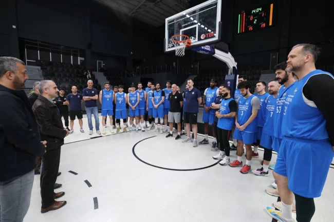 Kocaeli'de Çayıorva Belediye Başkanı Bünyamin Çiftçi, Türkiye Basketbol Ligi'ni altıncı tamamlayarak süper lig için play-off mücadelesi verecek Çayırova Belediyesi ..