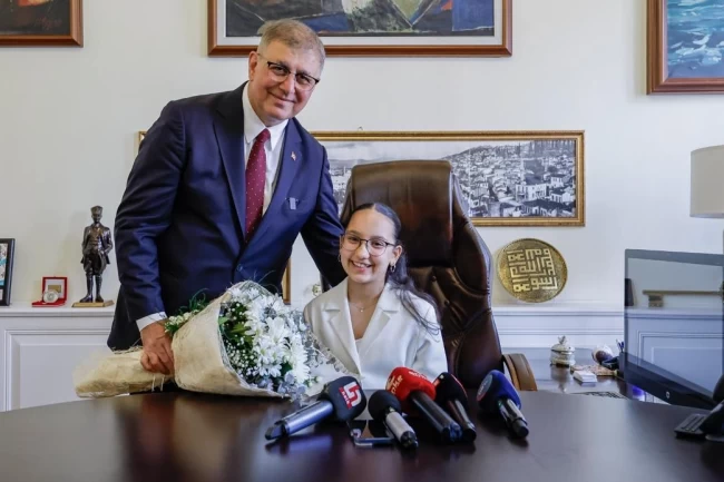 İzmir Büyükşehir Belediye Başkanı Dr. Cemil Tugay, 23 Nisan Ulusal Egemenlik ve Çocuk Bayramı'nda koltuğunu ortaokul 6. sınıf öğrencisi ..