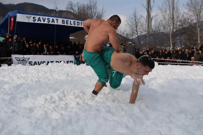 Artvin'in Şavşat ilçesine bağlı Veliköy'de bu yıl 28'incisi düzenlenen "Kar Üstü Karakucak Güreşleri" yapıldı.