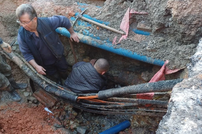 Balıkesir'de Ayvalık'ın Armutcuk Mahallesi'nde meydana gelen 250'lik pik boru içme suyu arızası, Balıkesir Su ve Kanalizasyon İdaresi (BASKİ) ekiplerinin ..