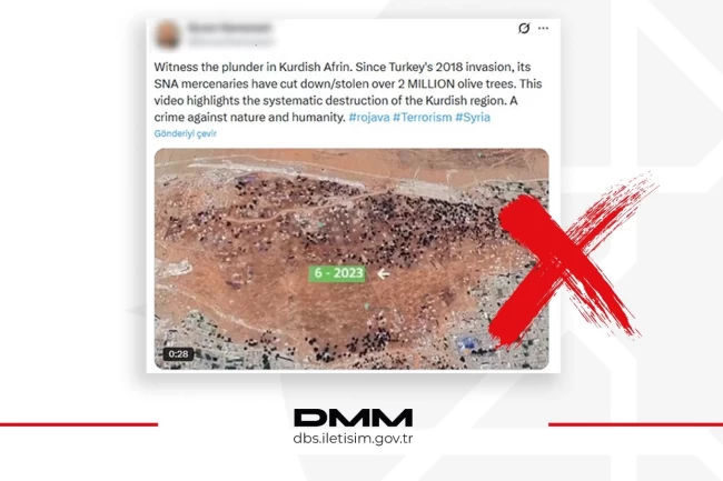 İletişim Başkanlığı Dezenformasyonla Mücadele Merkezi, Türkiye'nin Afrin'de 2 milyondan fazla zeytin ağacını kestiği yönündeki iddiaların tamamen asılsız ve kara ..